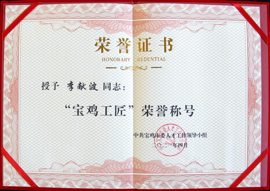 4月28日上午,寶雞市慶祝“五一”國(guó)際勞動(dòng)節(jié)大會(huì)在寶雞市職工文化中心召開。會(huì)上,寶光股份滅弧室產(chǎn)品制造部高溫封接工段長(zhǎng)李獻(xiàn)波榮獲“寶雞工匠”榮譽(yù)稱號(hào)。