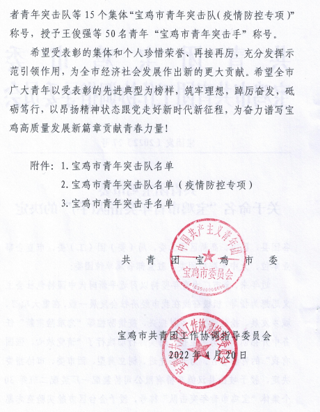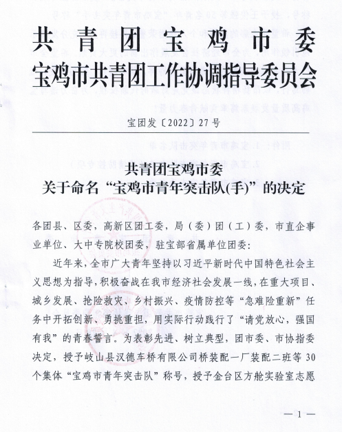 寶光股份固封班組被團市委授予“寶雞市青年突擊隊”榮譽稱號