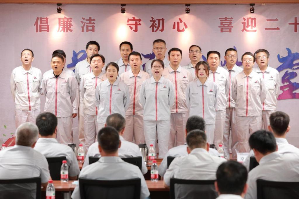 經典配音《光影頌初心》領著我們重溫熱血青年在南湖紅船上的偉大理想,感受革命人的熱情和睿智,在國際歌的渲染下,“無產階級在這個革命中失去的只是鎖鏈,他獲得的將是整個世界”,讓人熱血澎湃;原創詩朗誦《揚帆起航》熱情歌頌了為公司發展付出心血的每位員工,表達了對公司的無限深情;《夸夸咱自己》的包裝發運組同事,手持鑼鼓、話語幽默,用家鄉話夸出了為公司發展堅守在一線的大家;安全環保組同事帶來的健身操《本草綱目》激情勁爆,活力滿滿,進一步展現了廣大職工熱愛生活、積極向上的精神風貌。