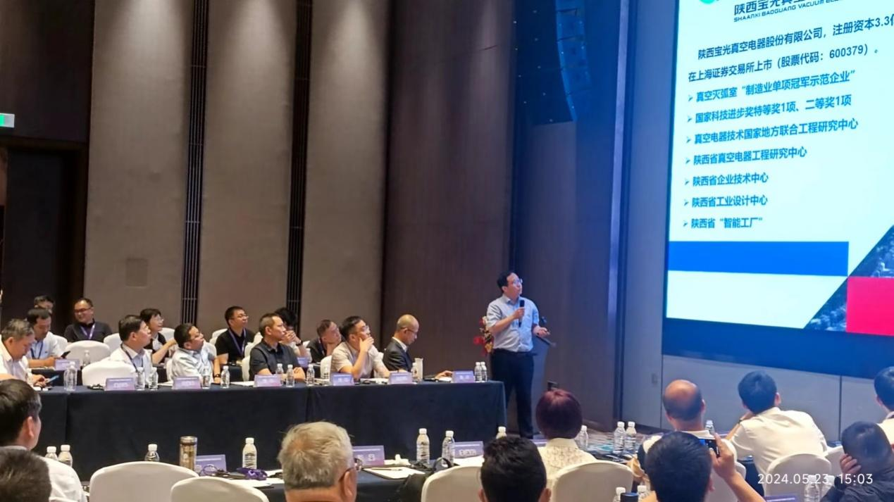 寶光股份做為蟬聯(lián)中國制造業(yè)單項冠軍企業(yè)、真空器件行業(yè)的旗艦,黨委副書記、總經(jīng)理劉壯一行應(yīng)邀參加論壇,副總工程師、技術(shù)中心主任李鵬代表寶光股份做了“高電壓真空滅弧室的研發(fā)與應(yīng)用”的主旨報告,向與會行業(yè)專家、相關(guān)企業(yè)展示了公司近年在高電壓真空滅弧室研發(fā)上新的研究成果,進一步堅定 “真空+環(huán)保氣體絕緣”解決方案在高電壓等級場合應(yīng)用的信心,得到與會專家、學(xué)者及相關(guān)企業(yè)負責(zé)人的一致肯定。