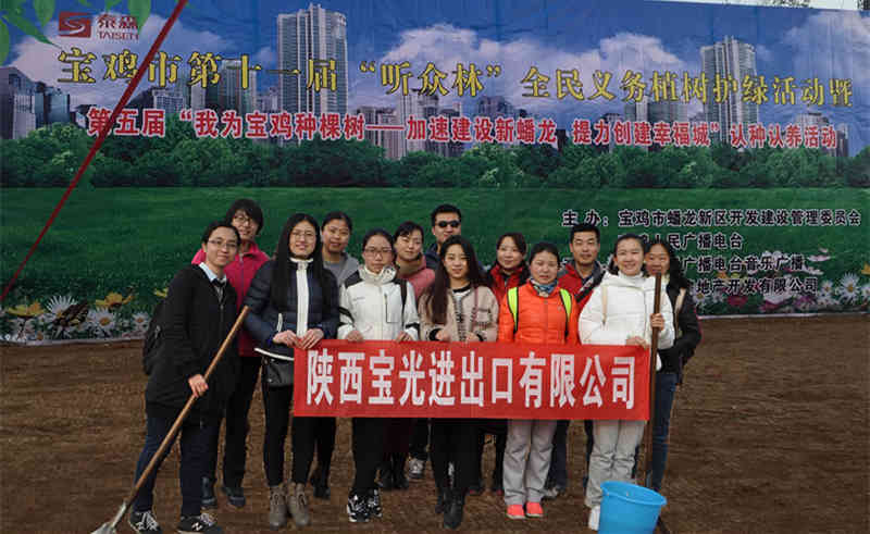3月12日,在一年一度的植樹節到來之際,寶光進出口公司的13名志愿者拿著鐵鍬,水桶等植樹工具來到了蟠龍新區光谷錦繡公園,參加了由寶雞廣播電臺組織的“我為寶雞種棵樹”學雷鋒活動。