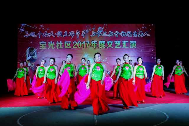 5月27日晚,寶光社區舉辦2017年端午文藝晚會,并對2016年度社區10名身邊好人以及兩個五好家庭進行了表彰。參加晚會演出的演員近200人,參演人員上至86歲的老人,下至8歲的兒童,演出吸引了近1000名居民觀看。