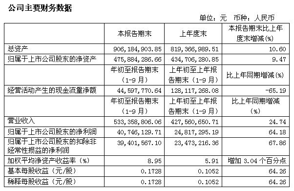 寶光股份2016年3季度主要財務(wù)指標(biāo)