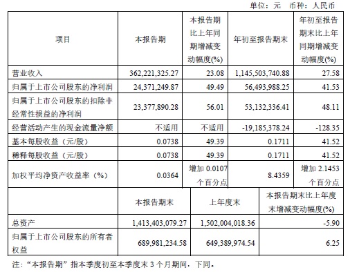 寶光股份2023年三季度主要會計數(shù)據(jù)和財務(wù)指標(biāo)
